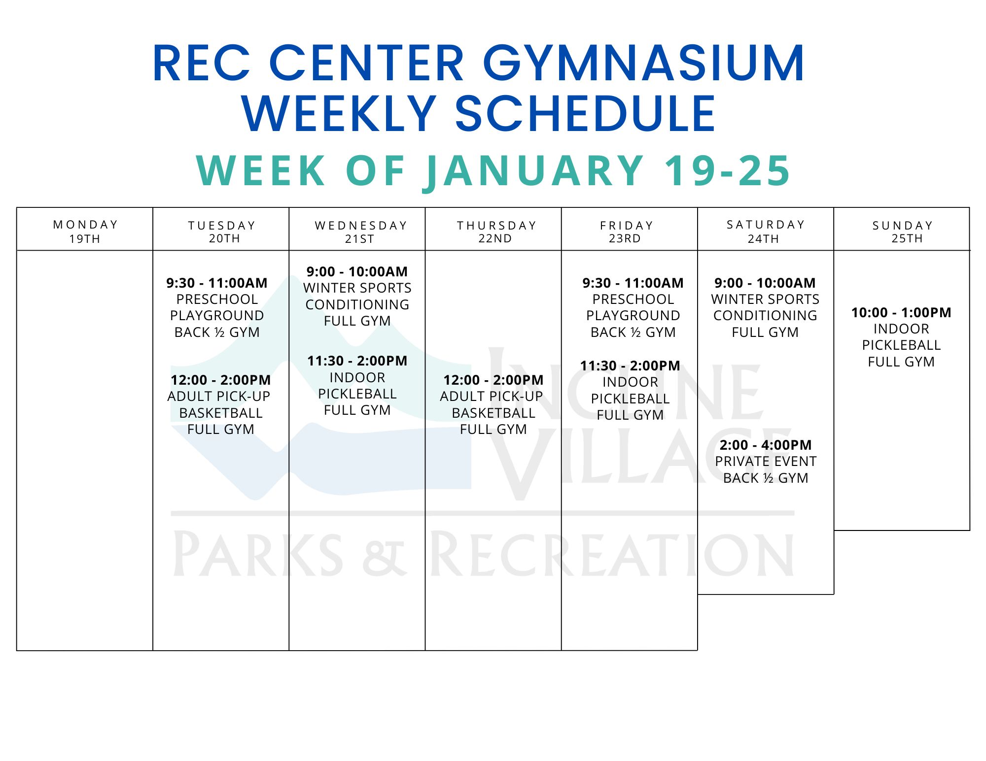 The gymnasium at the Recreation Center offers a full-size basketball court used for drop-in play, indoor pickleball play (in the wintertime), as well as many of our youth programs and space for personal workouts. The gymnasium can be divided into two spaces with a curtain, providing flexible options for special events and more.